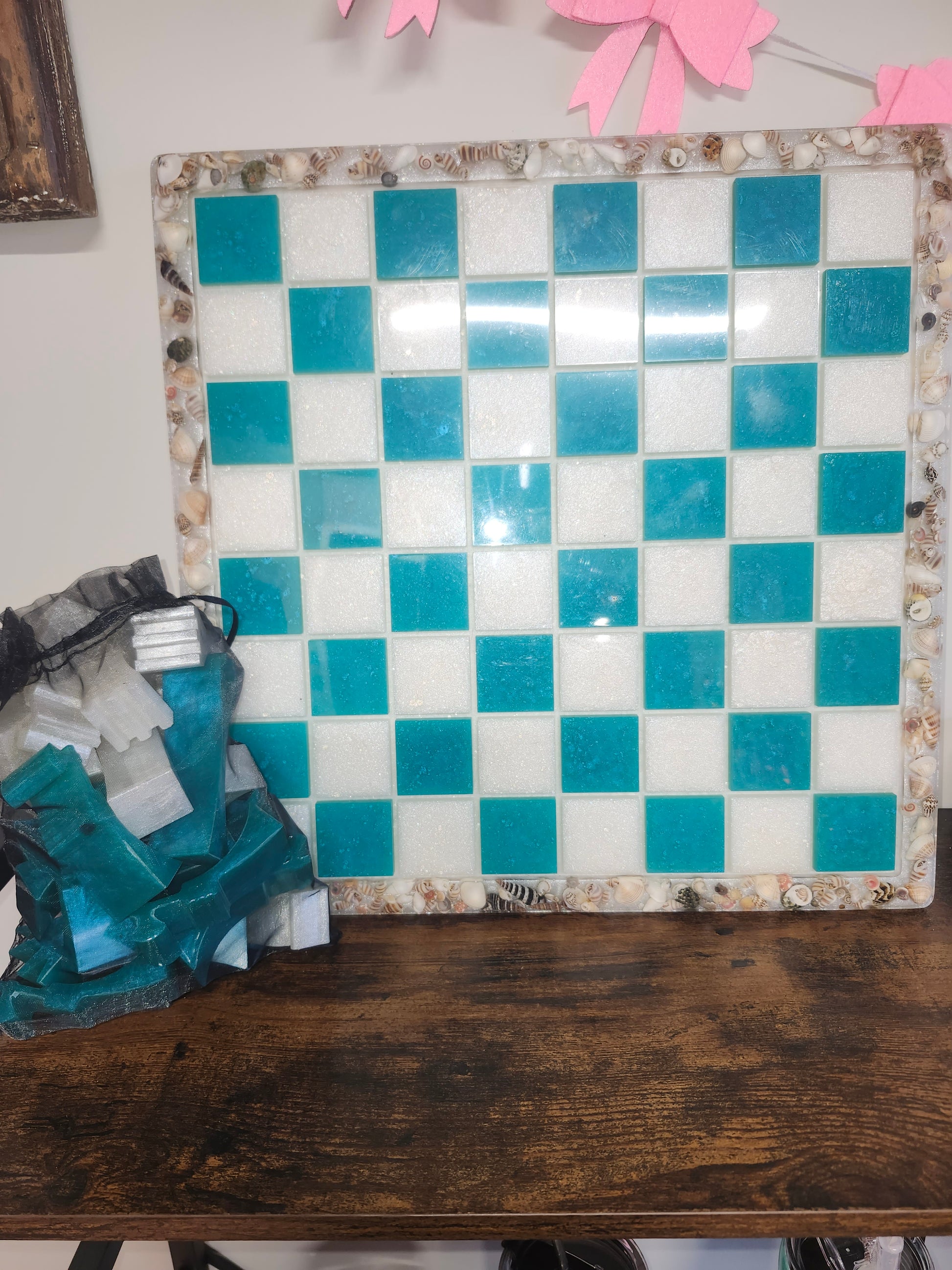 Poured Resin Shell Chess Set